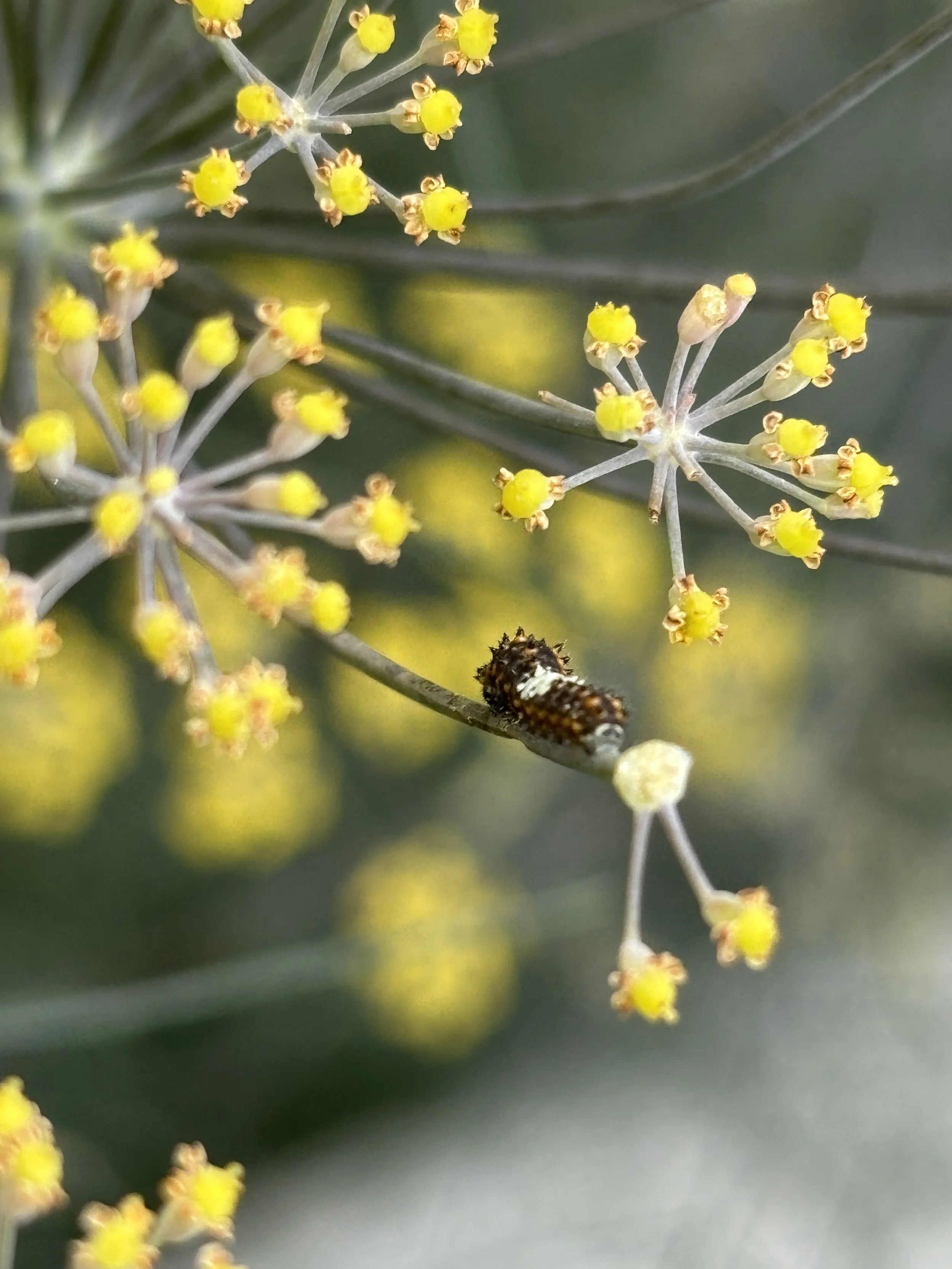 This is about the second instar, again on the fennel. We are doing our best to look like unappetizing bird poop. And so the cycle continues!
